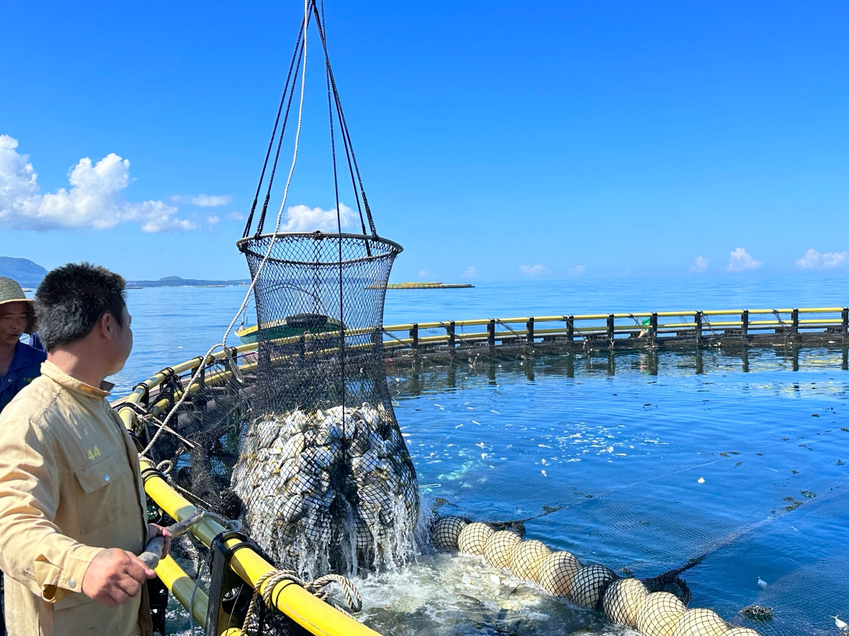 深海网箱养殖的金鲳鱼(央广网记者 索迪 摄)